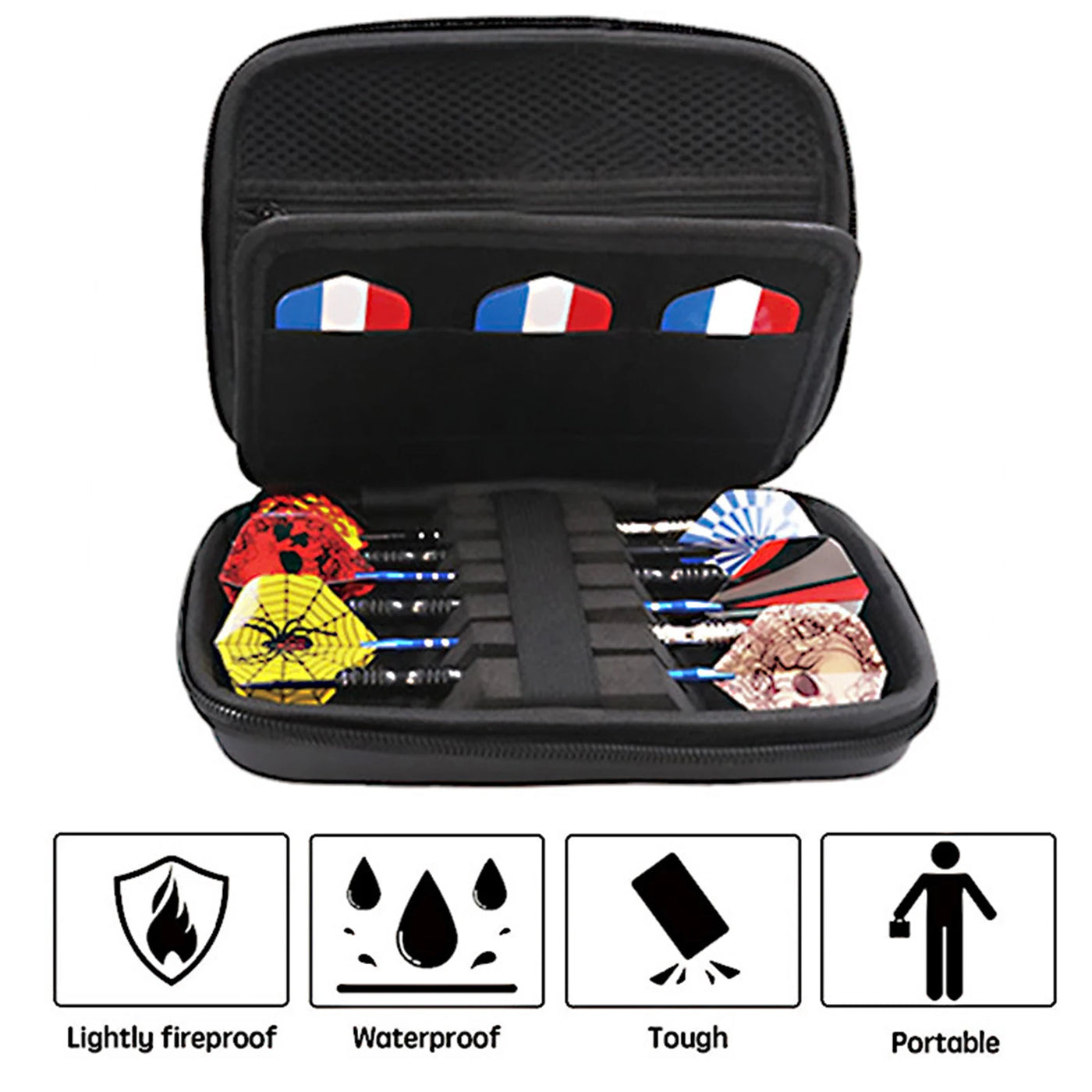 - Organised interior layout for darts, shafts, flights, and tips